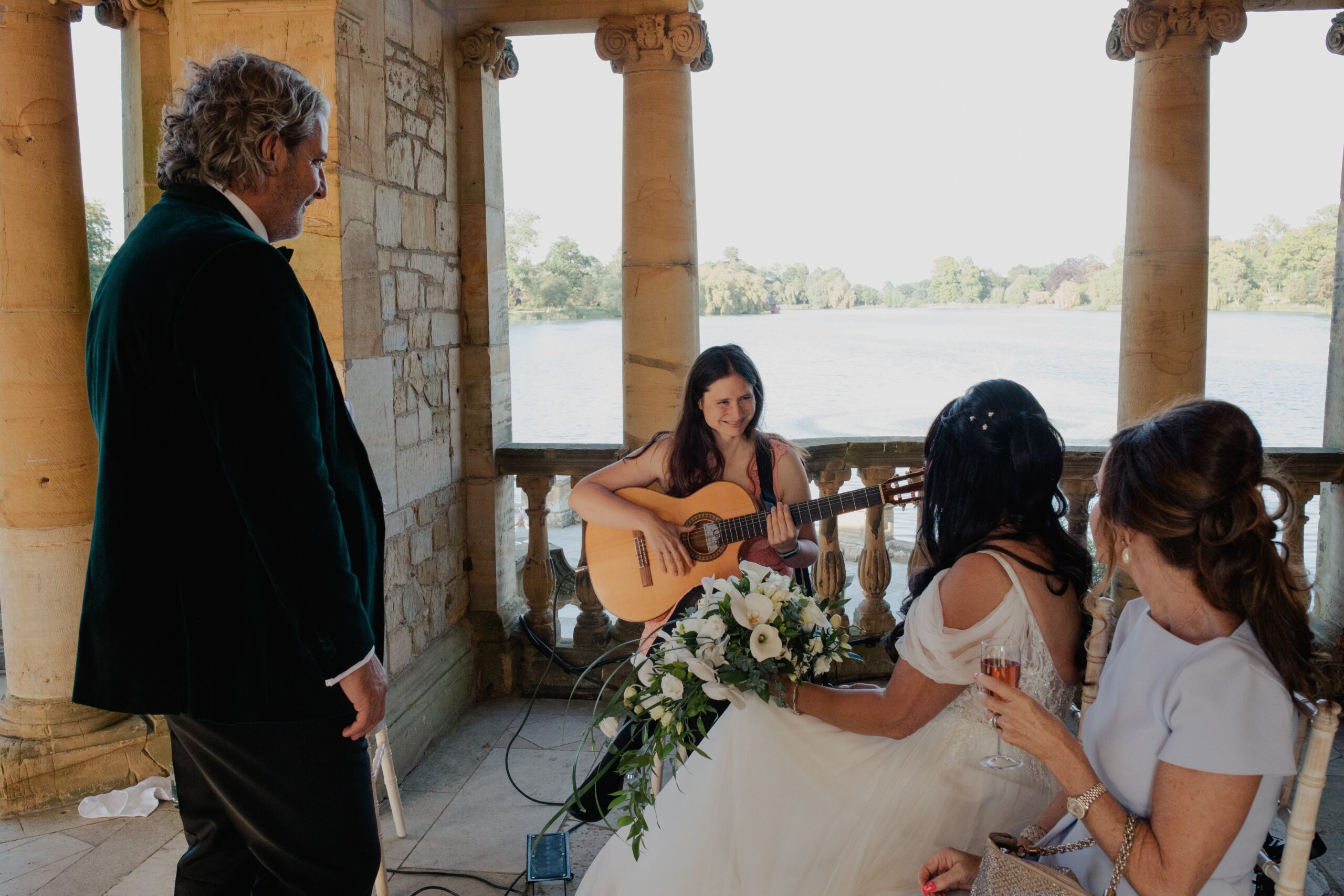 As your guests enjoy drinks and canapés after the ceremony, the gentle sound of live guitar creates an elegant, relaxed atmosphere, adding warmth, charm, and a touch of magic to your celebration.